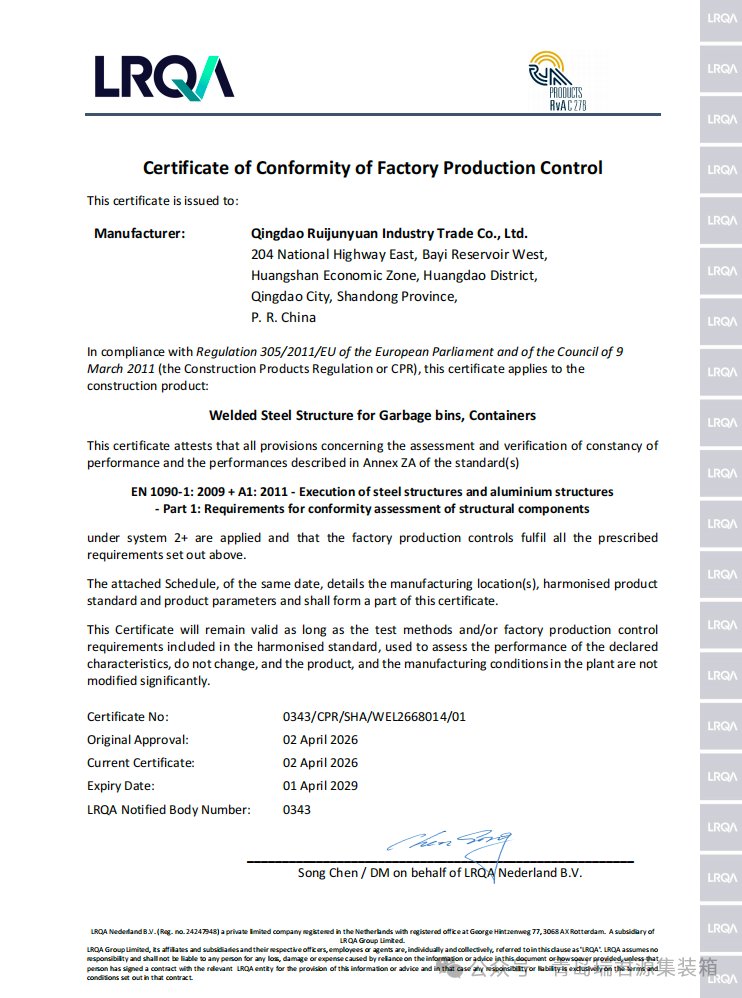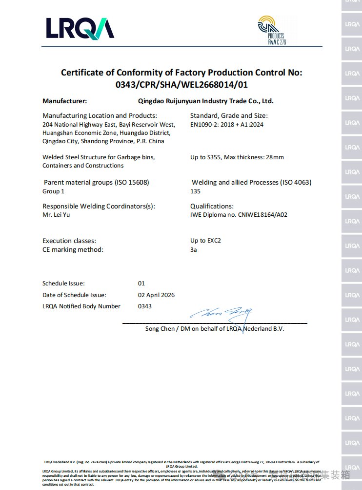 Qingdao Ruijunyuan Industry & Trade/Container Co., Ltd. has passed the EU EN1090 certification!